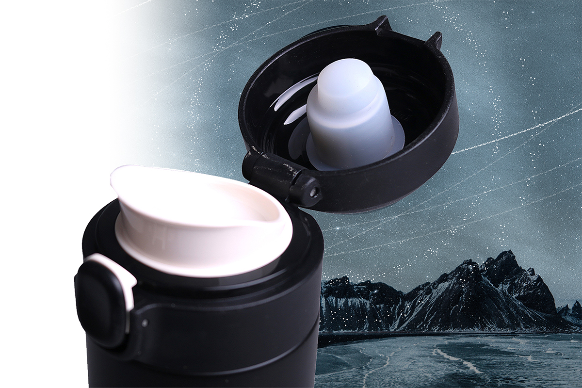 GGalaxy-Thermobecher sind extrem dicht. Sie verfügen über Silikondichtungen unter dem Deckel und einen zusätzlichen „Leak Proof“-Schutz zum Schutz vor versehentlichem Öffnen und Verschütten von Flüssigkeit.
