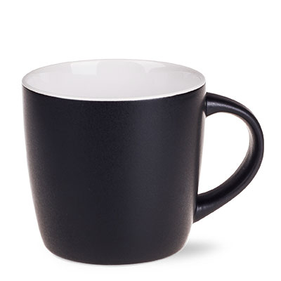 Schwarz-matter Becher außen, farbig glänzend innen. Das Produkt wurde bei der Wahl zum Werbeartikel 2013 auf Platz 1 gewählt