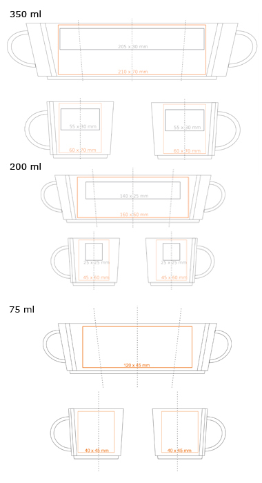 Zur Verfügung stehende Drucktechniken für LUCAS: *  (75 / 200 / 350 ml)