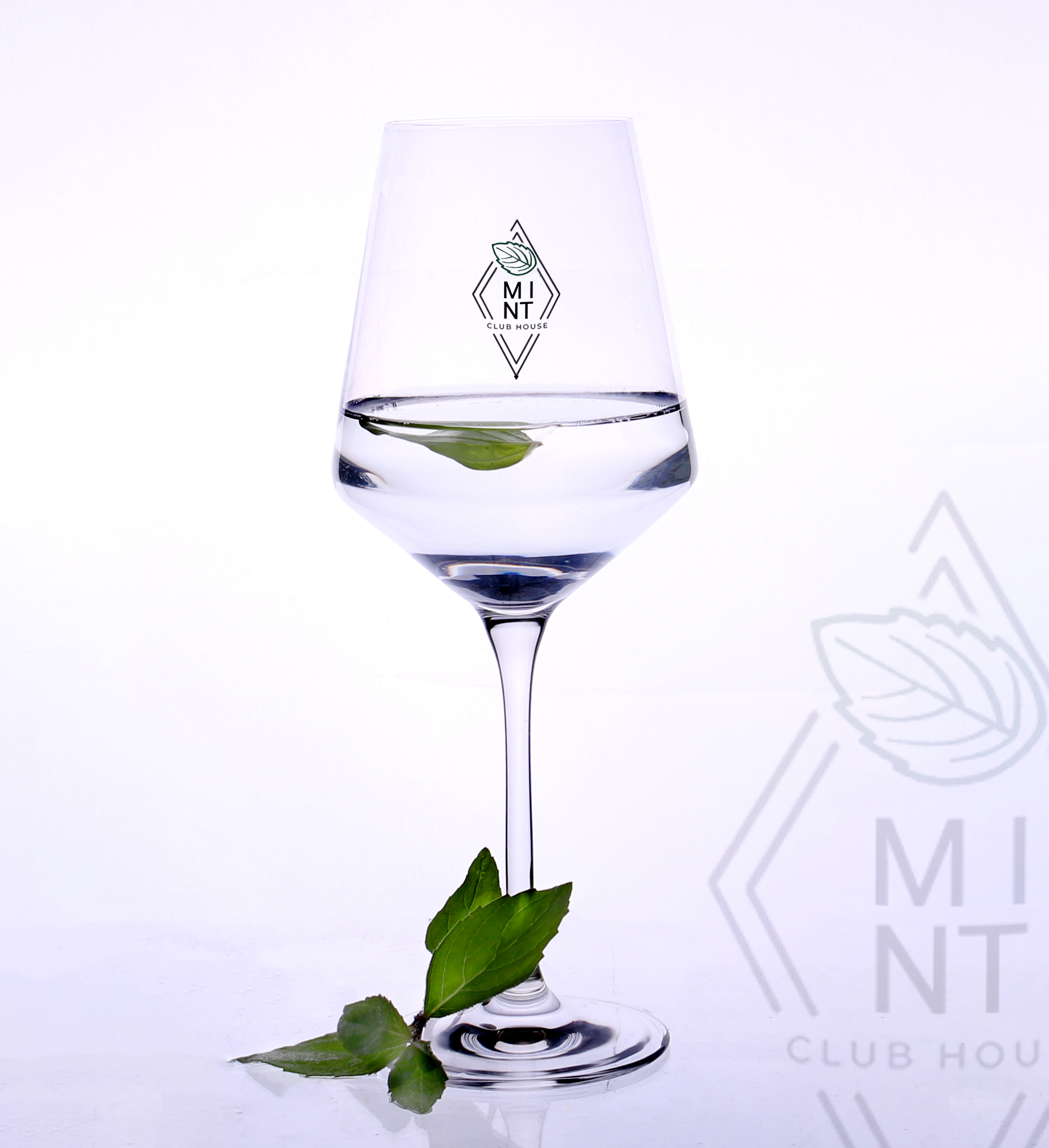 Raffiniertes Glas für die Markenkommunikation. Ein elegantes Weinglas, dessen Dekoration die einzigartige Botschaft der Marke perfekt ergänzt.