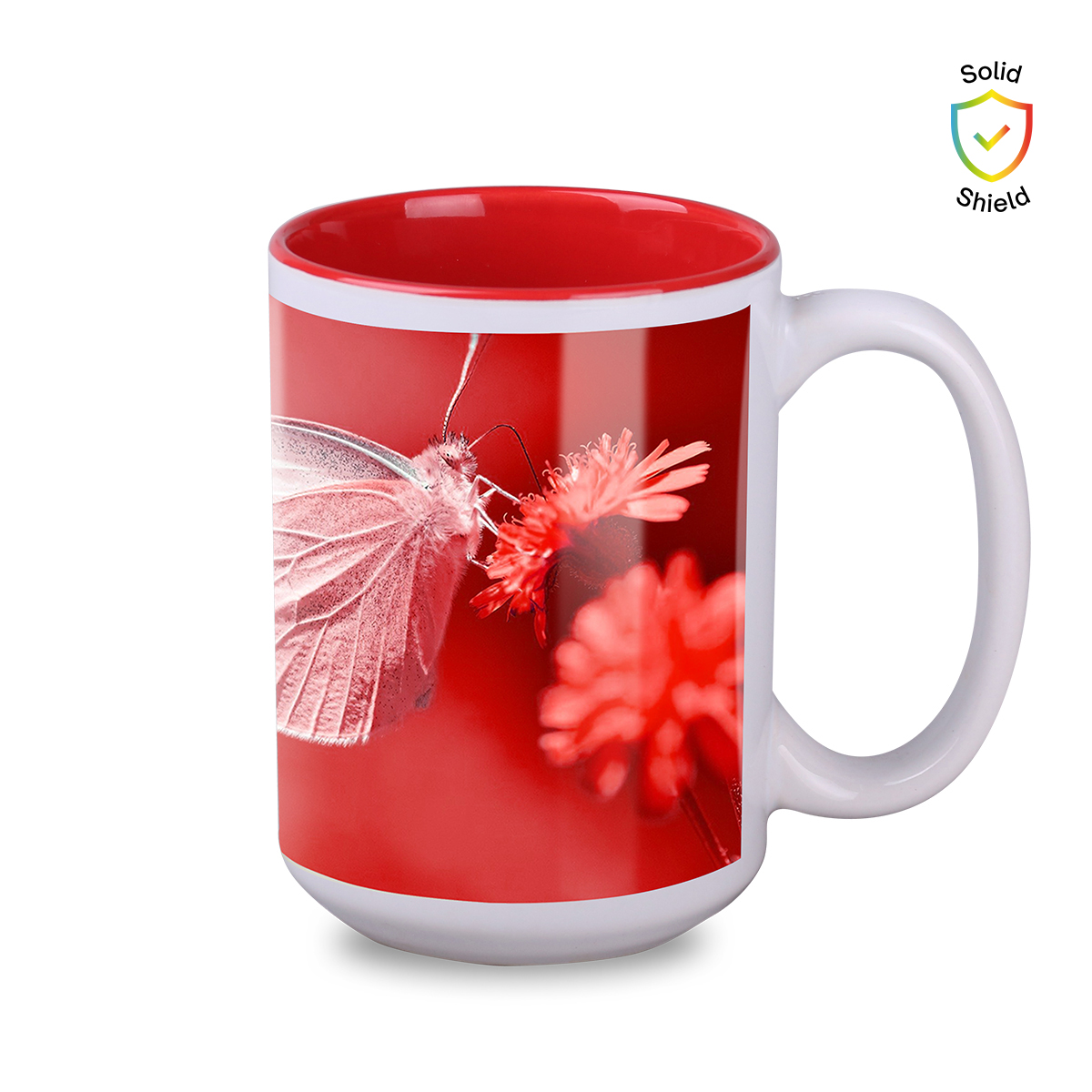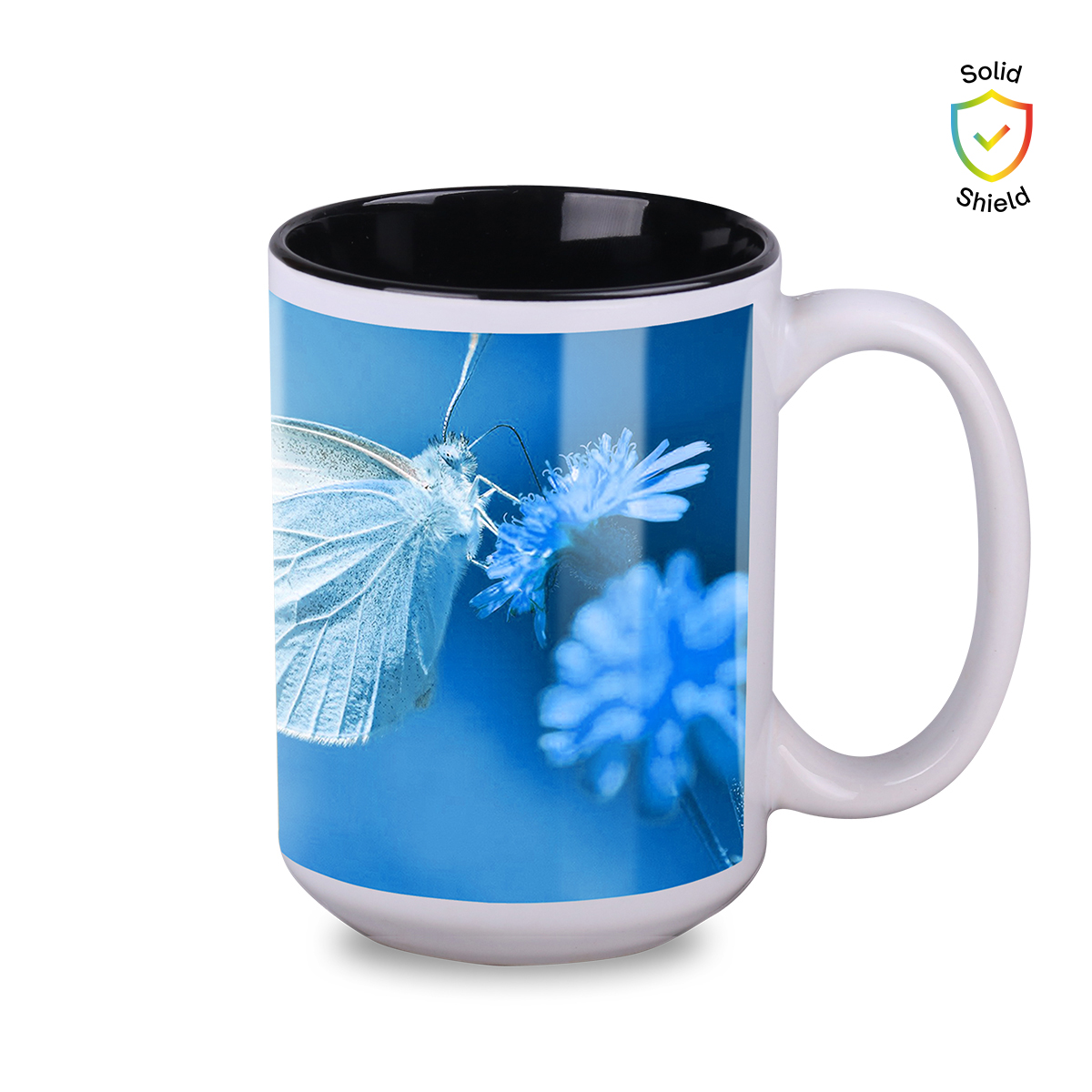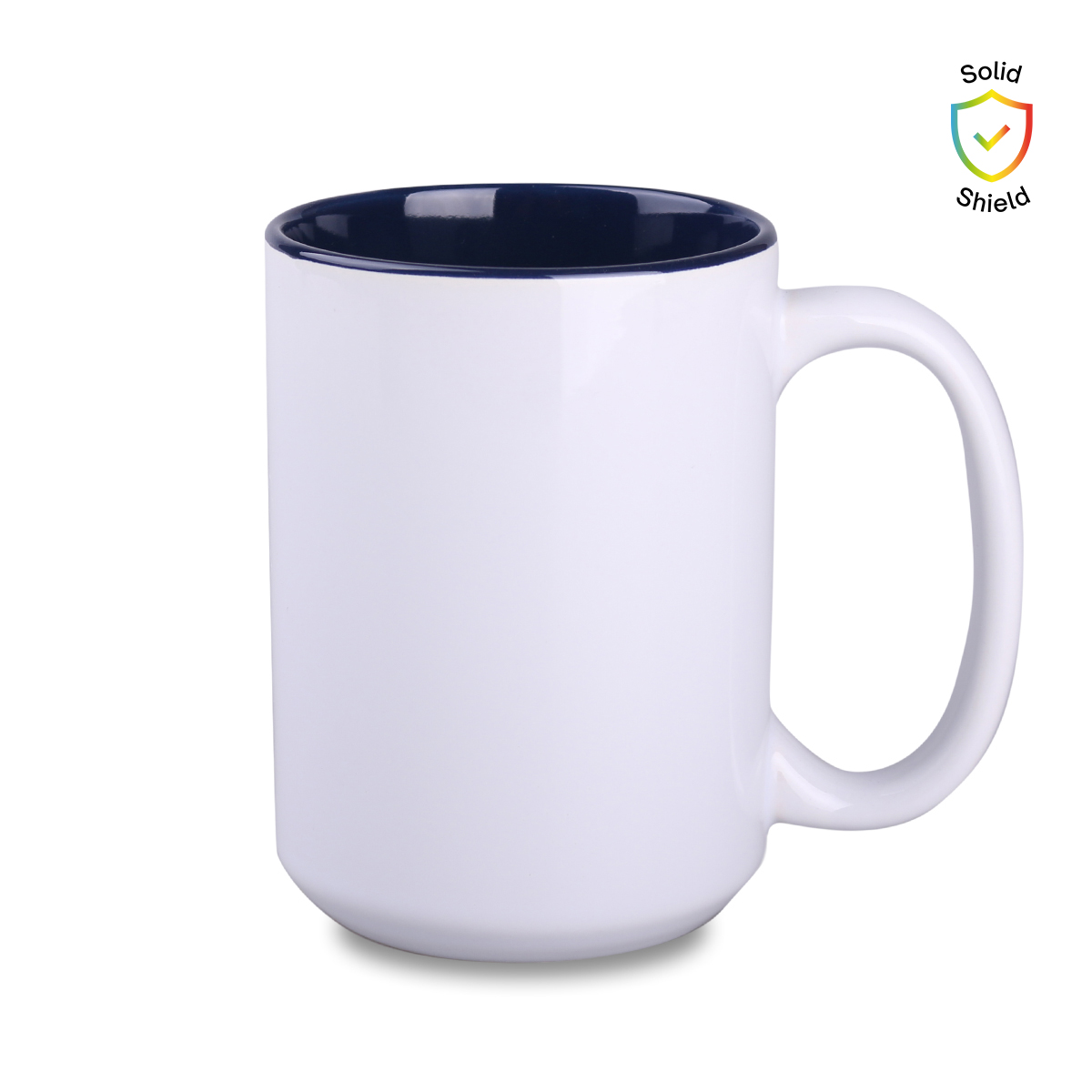 Ein Sublimationsbecher mit klassischer Form und großem Fassungsvermögen. Erhältlich in mehreren Varianten mit farbigem Innenraum. Verfügt über einen ergonomischen Griff und bietet umfangreiche Branding-Möglichkeiten.